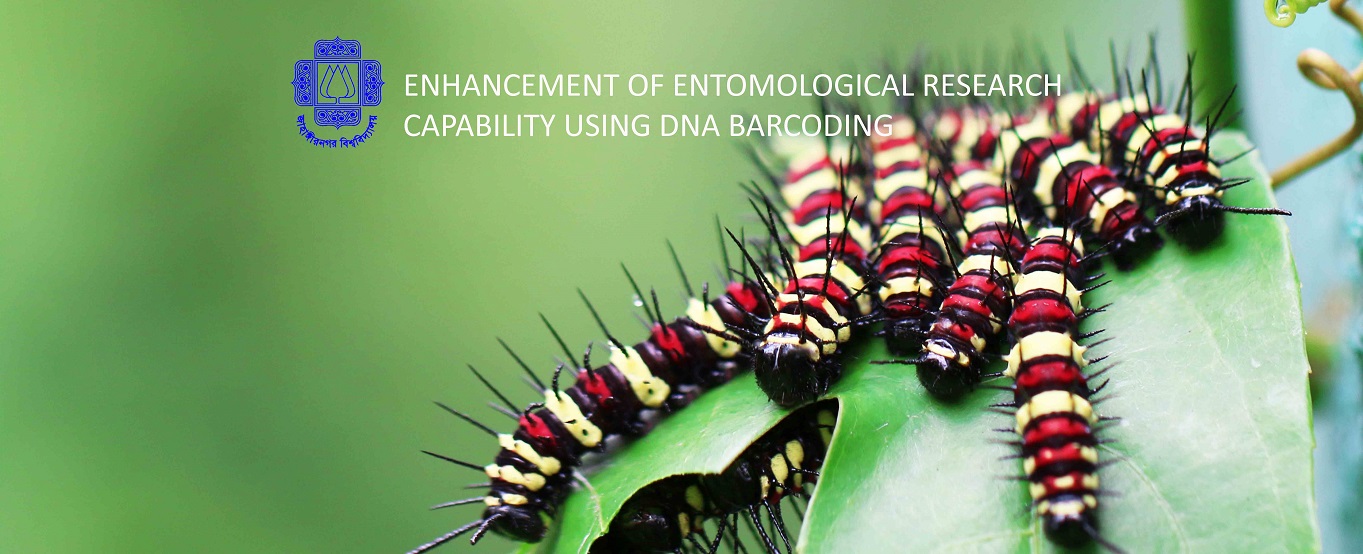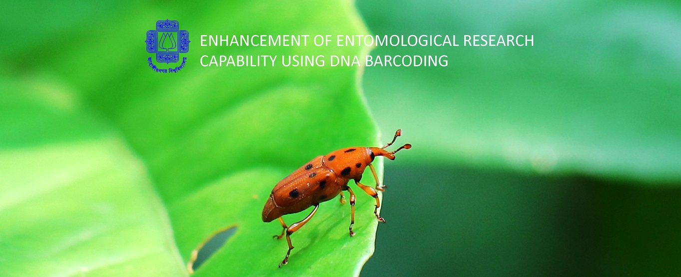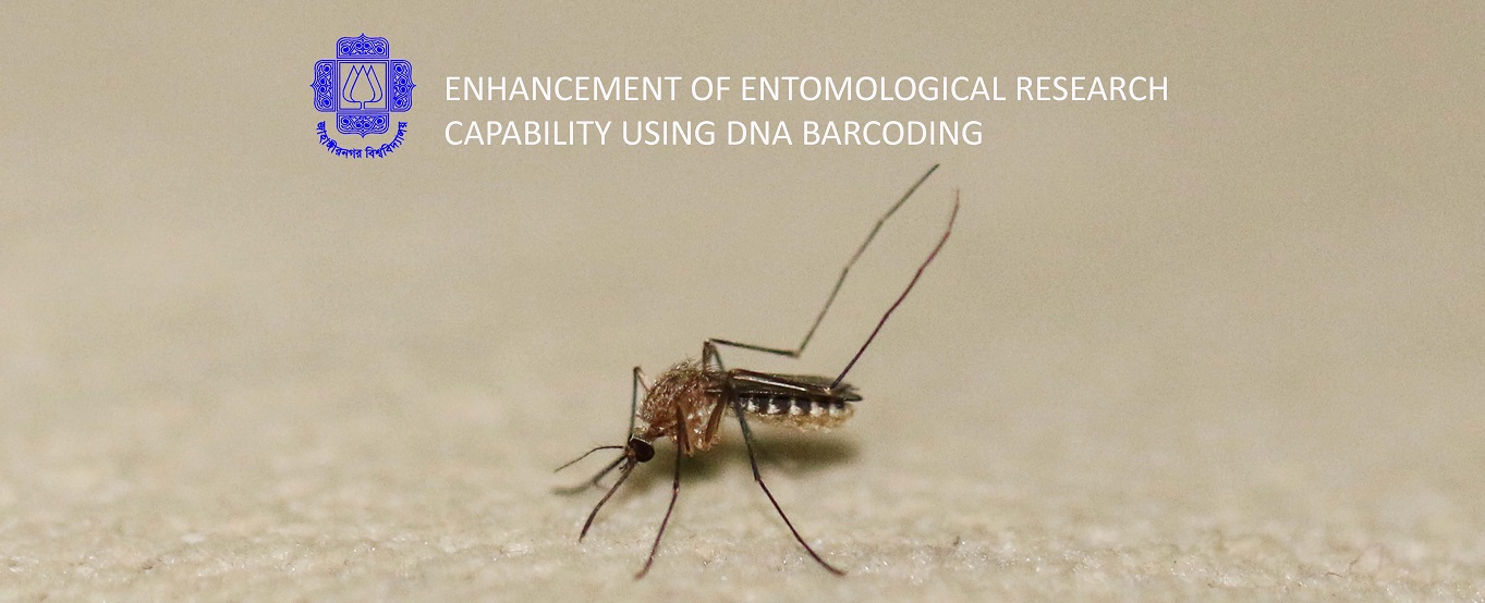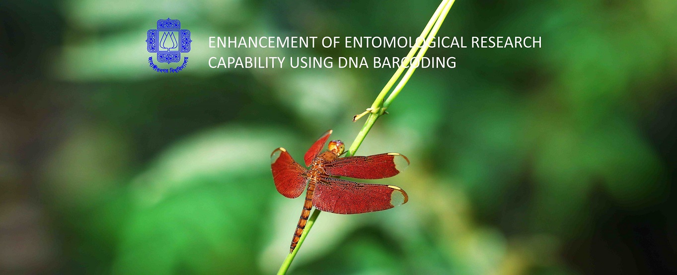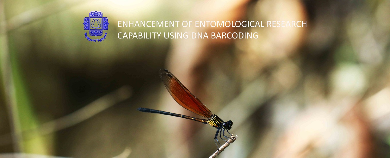 DNA Barcoding Laboratory belongs to the Entomology Section, Department of Zoology, Jahangirnagar University, Savar, Dhaka, BANGLADESH. In Bangladesh rapid urbanization, industrialization and indiscriminate uses of pesticides in agriculture are causing serious pollution. This may also stimulates emergence of newer insect pests of agriculture, medical and veterinary field. Along with dengue and malaria are also notable medically important diseases which vector is mosquitoes. To deal with the coming threats, each nation might have a quick and correct taxonomic tool to identify those insects. Correct taxonomic identification of these vectors and pests, along with identification of pollinators like butterflies and bees will certainly guide the scientist to attempt proper and quick management measures.